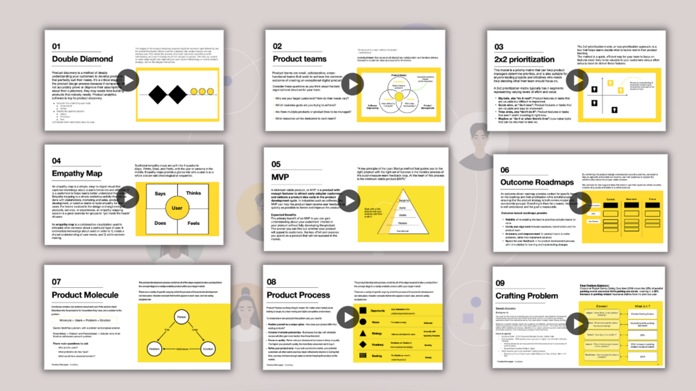 - ๐๐ฅ๏ธ Interactive lessons: Each module includes interactive lessons that cover key concepts and best practices related to product management, user research, and solution generation.